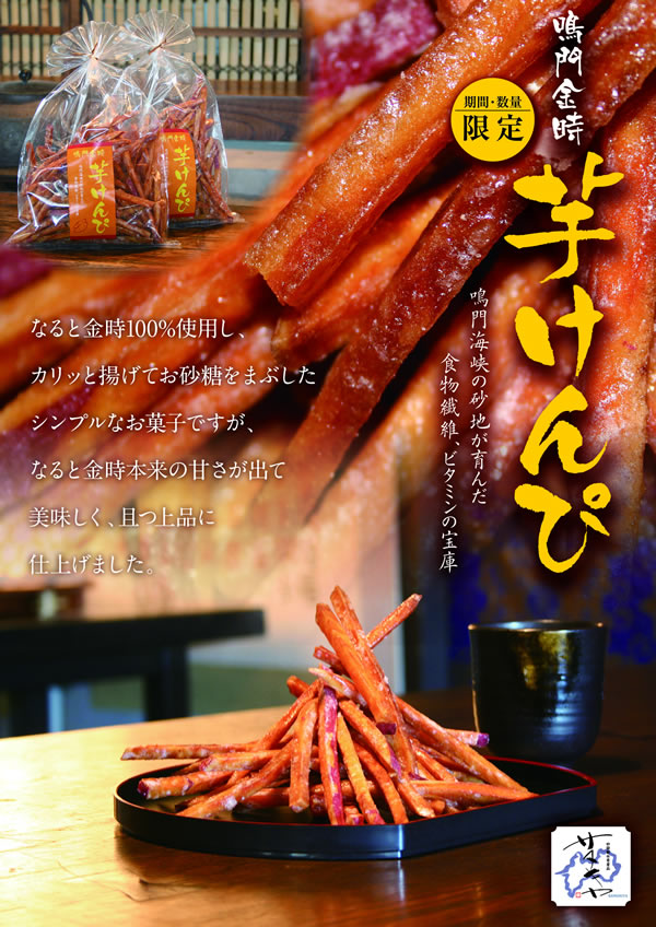 “ なると金時 さつまいも ”は徳島・鳴門を代表する特産品で、鳴門海峡の微量要素やミネラルに富んだ砂地による「砂地栽培」によって作られるビタミンCやカロチン、食物繊維を多く含んだ自然食品です。